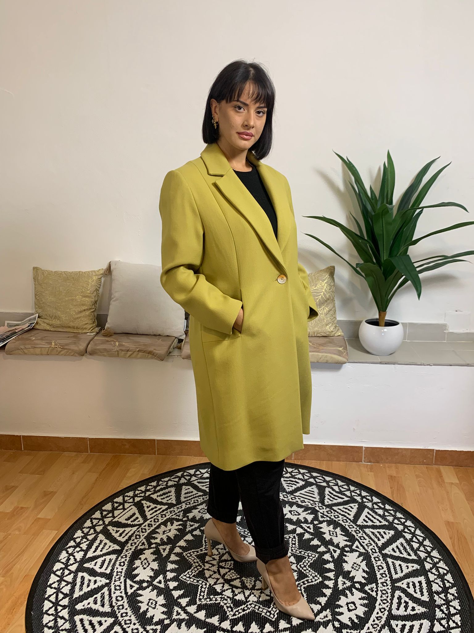 CAPPOTTO CLIPS realizzato in 100% lana vergine, con interno in 100% viscosa. Presenta bottoni sfumati beige e garantisce un’eccellente protezione durante l’inverno grazie al suo tessuto caldo e pesante. La modella che lo indossa misura 170 cm e pesa 62 kg.