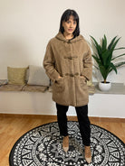 La pelliccia Peggy Ho è realizzata in ecopelliccia 100% poliestere, caratterizzata da sottili righe che donano profondità e luminosità al colore. Presenta un ampio cappuccio morbido e una lunghezza che supera il ginocchio, garantendo calore e copertura. Comoda e pratica, dispone di tasche frontali e si chiude con eleganti alamari in una nuance tra marrone e beige, per un abbinamento raffinato e versatile.