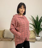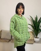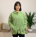 PEGGY HO propone un giubbino corto in maglia caratterizzato da bottoni a pressione e un cappuccio, impreziosito da una fantasia vivace. La modella alta 175 cm e con un peso di 54 kg indossa la taglia S nella tonalità verde menta, mentre la modella di 170 cm e 62 kg sceglie la taglia L nei colori verde salvia e rosa cipria. Realizzato in un mix di 70% poliammide e 30% poliestere, assicura comfort e durata nel tempo.