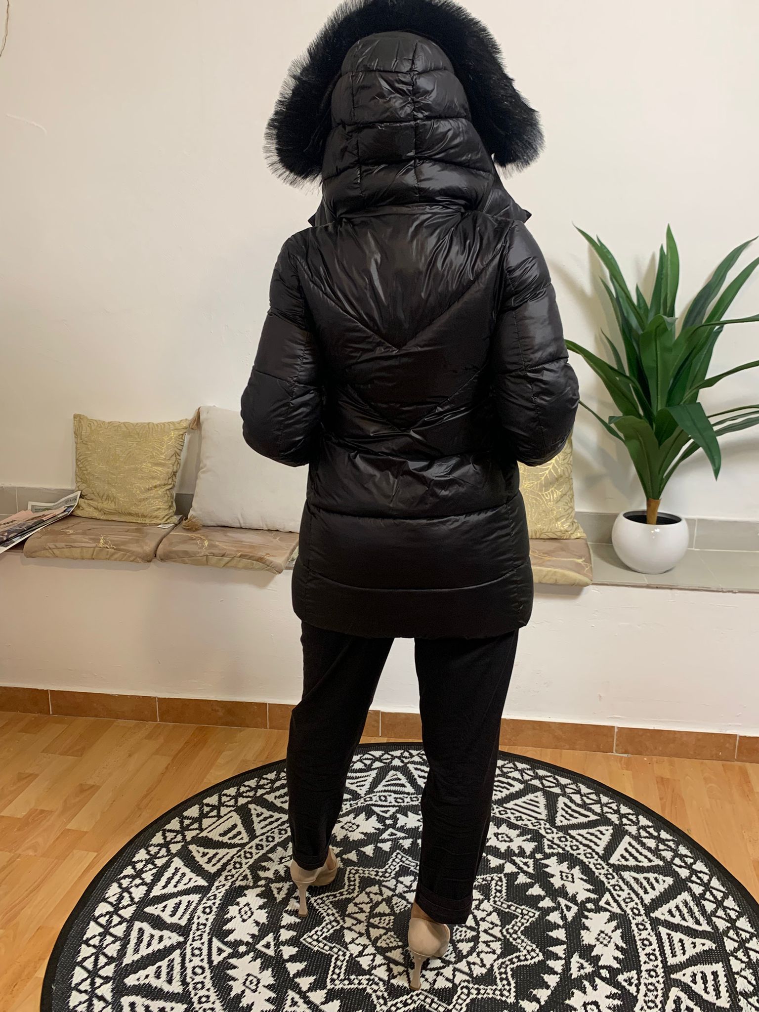 Il giubbino PEGGY HO combina funzionalità e comfort in una lunghezza studiata con precisione. È caratterizzato da cappuccio e pelliccia sintetica entrambi removibili, garantendo flessibilità d'uso. La modella che lo indossa è alta 170 cm, pesa 62 kg ed è vestita con una taglia S. Composizione: 100% poliammide.