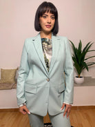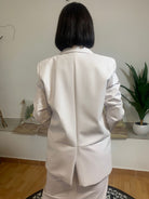 La gonna Vicolo bianca in similpelle si distingue per il design minimalista ed elegante, priva di tasche e caratterizzata da un bottone centrale sulla giacca abbinata. Realizzata con una combinazione di 50% poliestere e 50% poliuretanica per la gonna, e di 60% acetato e 40% per la giacca, garantisce comfort e stile raffinato. Il modello indossa una taglia adatta a una statura di 170 cm e un peso di 62 kg.