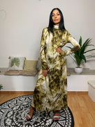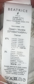 L’abito di Beatrice B. presenta un design avvolgente ed elegante, con un taglio curato caratterizzato da collo alto e maniche lunghe. Il drappeggio su entrambi i fianchi e la linea leggermente svasata esaltano la femminilità. La stampa sfumata con effetto mal tinte conferisce un tocco sofisticato. La modella, alta 175 cm e con peso di 54 kg, indossa una taglia L. Composizione: 97% viscosa, 3% elastan.