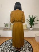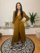 Sfizio rivisita la femminilità con un approccio innovativo attraverso questo abito caratterizzato da una linea sobria ma elegante. La scollatura a V, impreziosita da bottoncini in tessuto, si unisce a un piegone che parte dall’attacco dei bottoni e si conclude con uno spacco raffinato. Il modello è completato da bottoni sui polsini e tasche a scomparsa, combinando funzionalità e stile. Realizzato con il 88% di viscosa e il 12% di lana vergine, assicura comfort e qualità. La modella, alta 175 cm e 54 kg, indossa una taglia 42.