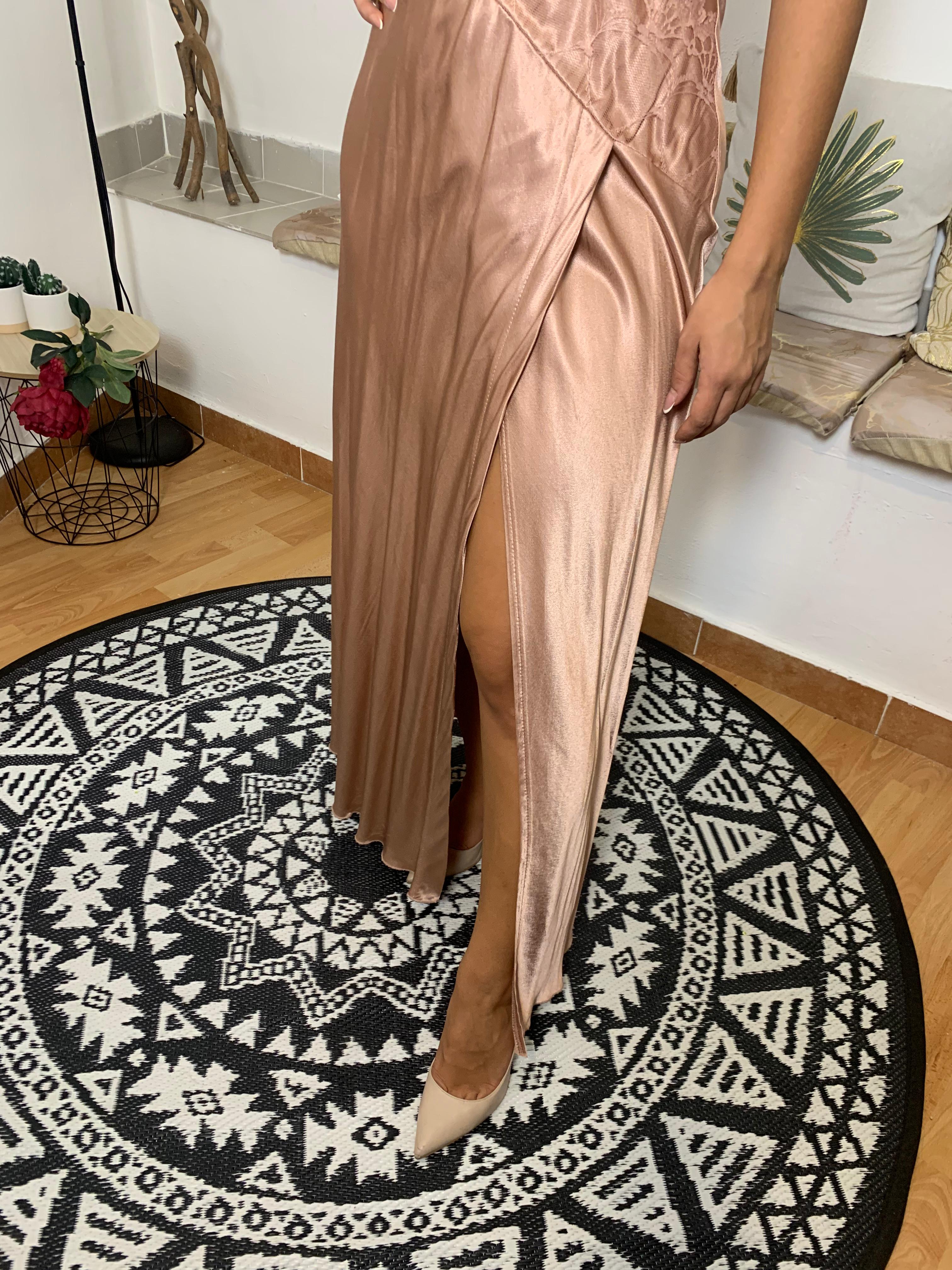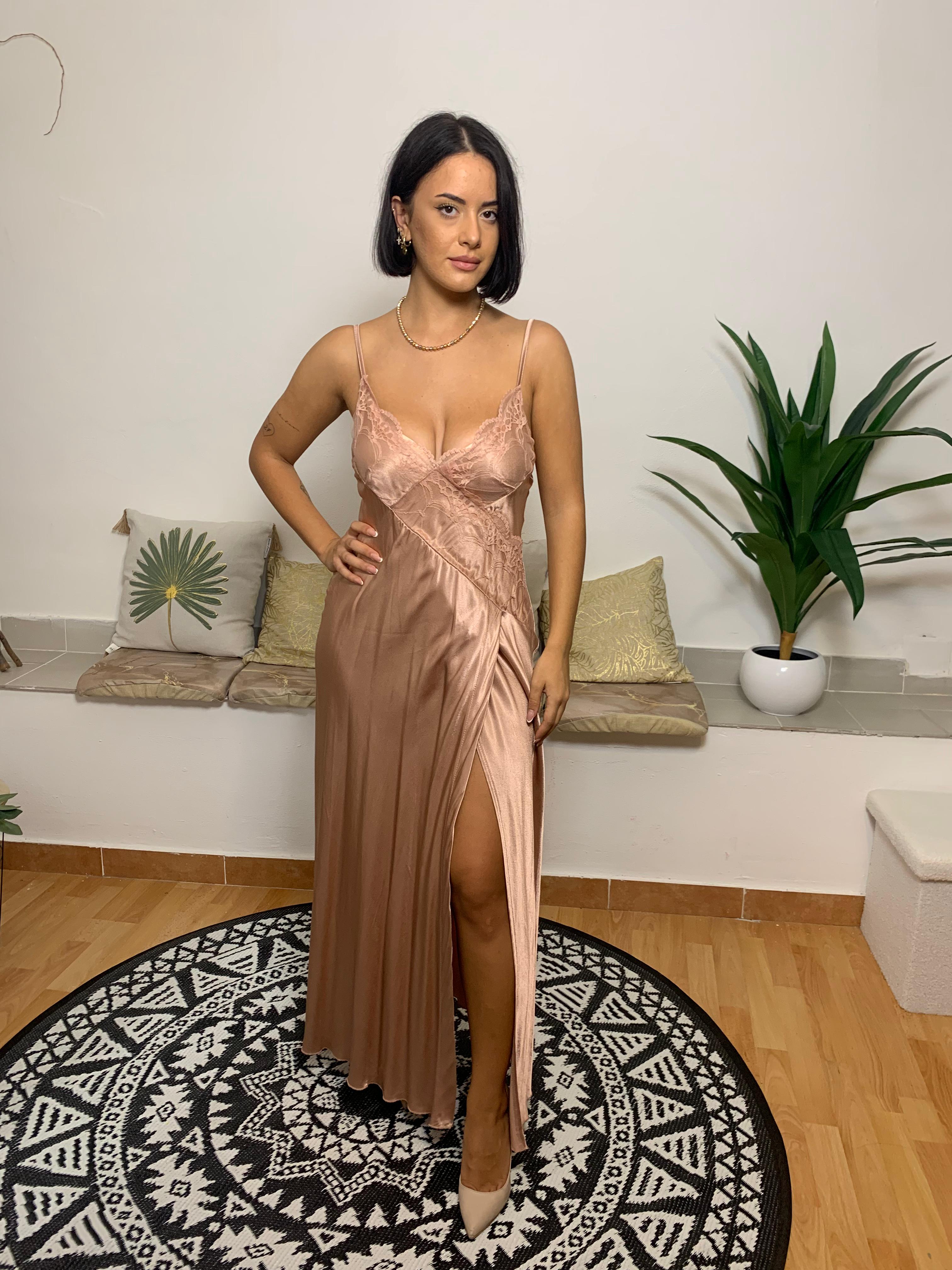 Vicolo propone questo elegante abito sottoveste dal design raffinato e sensuale. Presenta una scollatura audace, spalline regolabili e uno spacco frontale che ne esalta l’eccezionale stile. La modella, con un’altezza di 170 cm e un peso di 62 kg, indossa una taglia M. Realizzato al 100% in viscosa, garantisce comfort e qualità superiore.