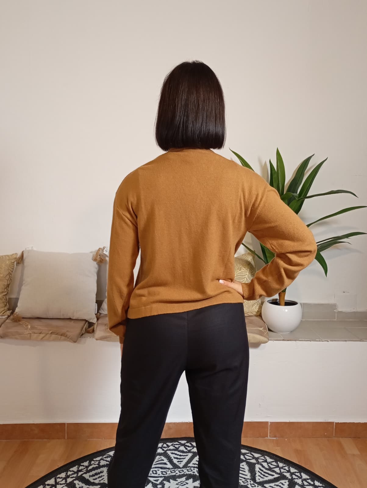 Il cardigan rosso Cristina Effe è un capo senza bottoni, caratterizzato da maniche lunghe calde e morbide. Semplice nel design, si distingue per la presenza di brillantini lungo tutte le rifiniture ai lati interni della maglia, che donano un tocco di eleganza discreta. Realizzato in una miscela di 45% acrilico, 30% nylon, 20% viscosa e 5% cashmere, garantisce comfort e qualità. Il modello indossato pesa 54 kg ed è alto 175 cm.