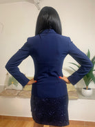PRENIU' propone una giacca dal taglio aderente e lineare, realizzata in un tessuto versatile. Presenta due tasche a pattina sul davanti e si chiude con un bottone color oro. La modella, alta 175 cm e con un peso di 54 kg, indossa una taglia 40. Composizione: 89% poliestere, 11% elastan.