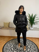 Il giubbotto Peggy Ho è un elegante piumino di lunghezza media dotato di cappuccio integrato con pelliccia sintetica removibile. Realizzato in 100% poliammide, offre comfort, calore e praticità. La modella, alta 170 cm e del peso di 62 kg, indossa una taglia M.