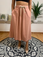 VICOLO presenta un elegante gonnellone in felpa caratterizzato da una vestibilità comoda e fluida. Dotato di laccetto in vita e tasche laterali pratiche, questo capo assicura stile e funzionalità. La modella è alta 170 cm, pesa 62 kg e indossa una taglia S. Realizzato in 65% cotone e 35% poliestere per un comfort ottimale.
