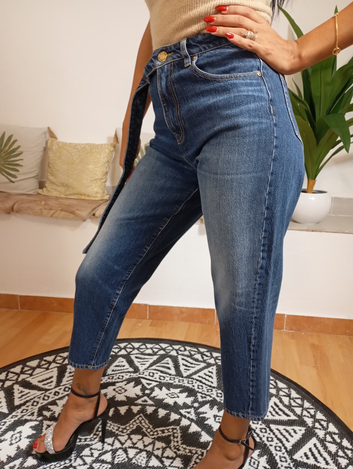 Pinko propone questo eccezionale jeans dalla linea mom fit, caratterizzato da un comfort superiore e un lavaggio di alta qualità. La particolarità del modello risiede nella chiusura con una finta cintura pendente, che esalta la sua vestibilità perfetta. Realizzato in 99% cotone e 1% elastan, questo capo assicura elasticità e comodità. La modella indossa una taglia 27, misura 175 cm ed pesa 54 kg.