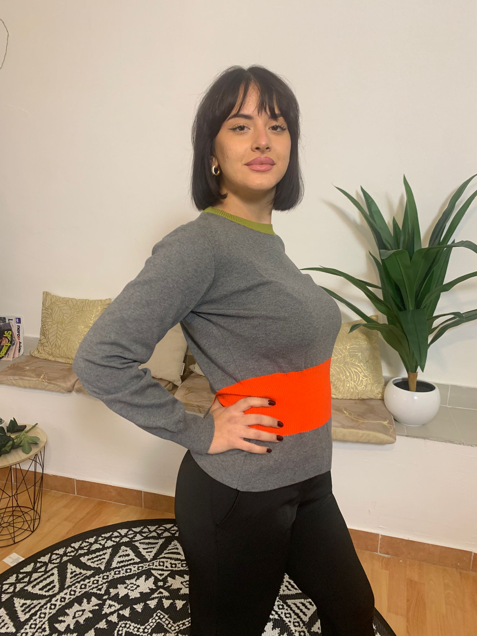 Elegante maglia a costine che valorizza la silhouette con dettagli raffinati al girocollo e in vita. Realizzata con un equilibrio perfetto tra calore e leggerezza, offre comfort senza appesantire. Ideale per chi ricerca un capo versatile e sofisticato. La vestibilità è stata testata su una modella di 170 cm e 62 kg, garantendo proporzioni armoniose.