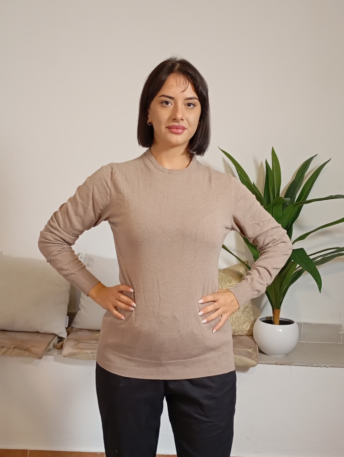Maglia Exte: maglia lunga, soffice e calda, realizzata in 57% poliammide e 43% viscosa. Presenta costine dettagliate sul girocollo, ai polsi e all'orlo per un design raffinato. Il capo è indossato da una modella alta 170 cm e con un peso di 62 kg.