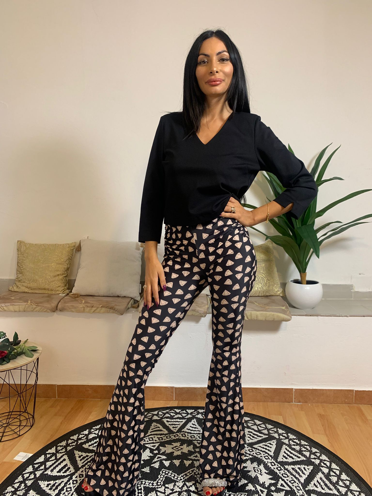 Elegante maglia in viscosa e nylon che combina comfort e stile. Caratterizzata da uno scollo a V con spalline imbottite che definisce la silhouette, maniche a tre quarti con sottile spacco laterale e taglio accorciato. La composizione in viscosa al 65% e nylon al 30% garantisce morbidezza e durabilità. Perfetta per chi ricerca un capo versatile e raffinato da indossare in diverse occasioni.