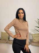 La maglia influencer si distingue per l’intera superficie ricoperta di brillantini, che aggiungono un tocco luminoso ed elegante. Presenta un collo alto e maniche lunghe, arricchita da una finta collana di brillantini più grandi e di forme diverse. Composta da 72% viscosa, 18% poliestere e 10% lurex, garantisce comfort e fascino. La modella in foto è alta 175 cm e pesa 54 kg.
