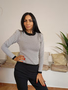 ONLY propone un elegante pullover in maglia a nido d’ape, caratterizzato da una vestibilità aderente e maniche con un delicato drappeggio sulle spalle. La modella, alta 175 cm e di 54 kg, indossa la taglia S nella versione bianca e la taglia L in quella fucsia. Composizione: 100% poliestere.