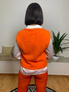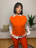 VICOLO presenta questa elegante maglia smanicata realizzata in maglina, caratterizzata da una linea giromanica e un collo giro versatile, ideale per molteplici abbinamenti. Il suo colore vivace dona un tocco distintivo al look. Il modello, alto 170 cm e 62 kg, indossa una taglia unica. Composizione: 81% lana vergine, 17% poliestere, 2% elastan.