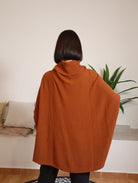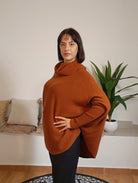 La maglia Vicolo presenta una vestibilità ampia con collo alto e struttura a costine che continua lungo tutte le maniche, restringendosi ai polsi. Il capo è più lungo sul retro rispetto al davanti, garantendo un taglio moderno ed elegante. Realizzata con una miscela di 40% viscosa, 30% poliammide, 25% lana e 5% altre fibre, offre comfort termico e una texture morbida. La modella indossa una taglia adatta alla sua altezza di 170 cm e peso di 62 kg.