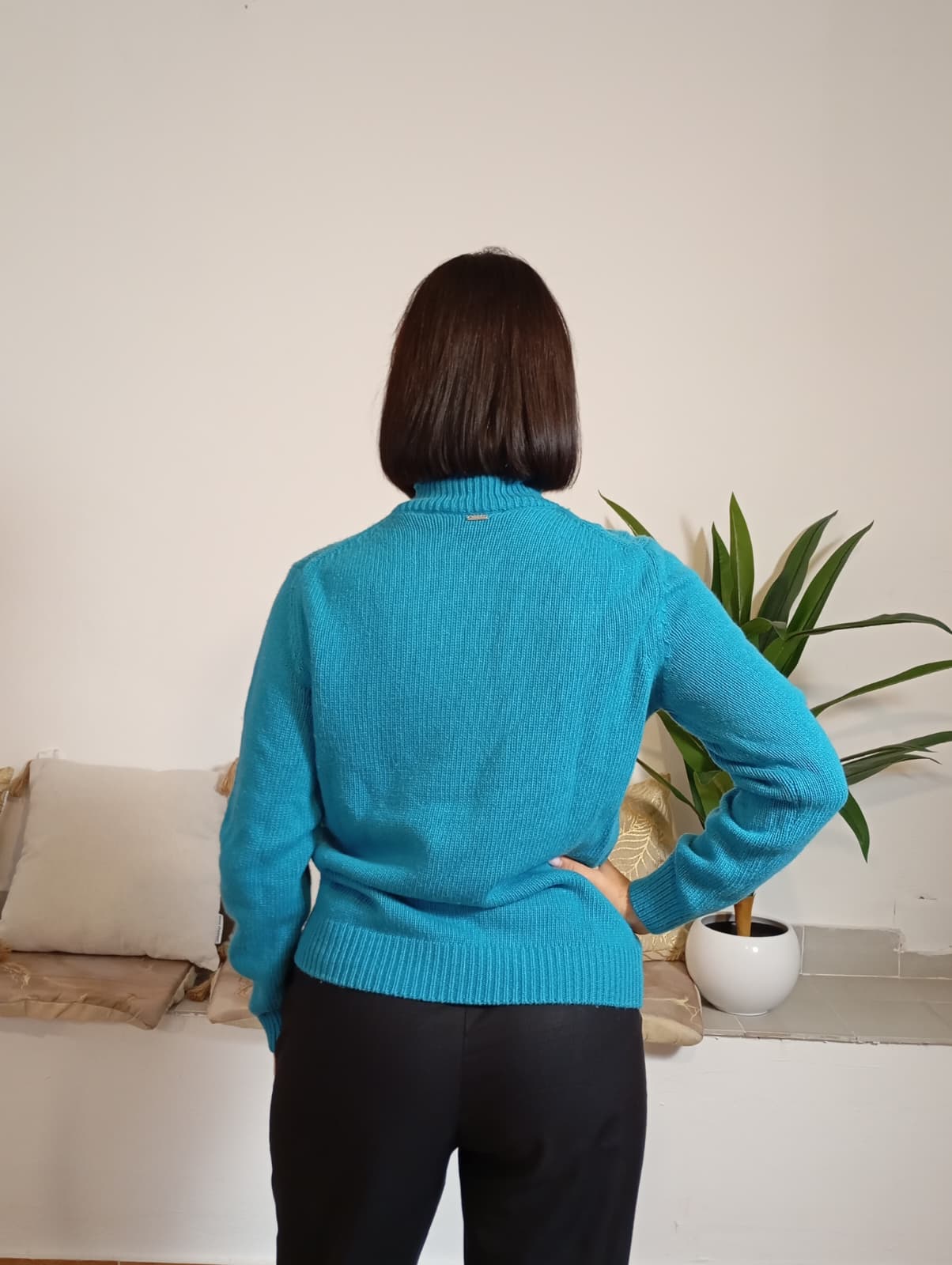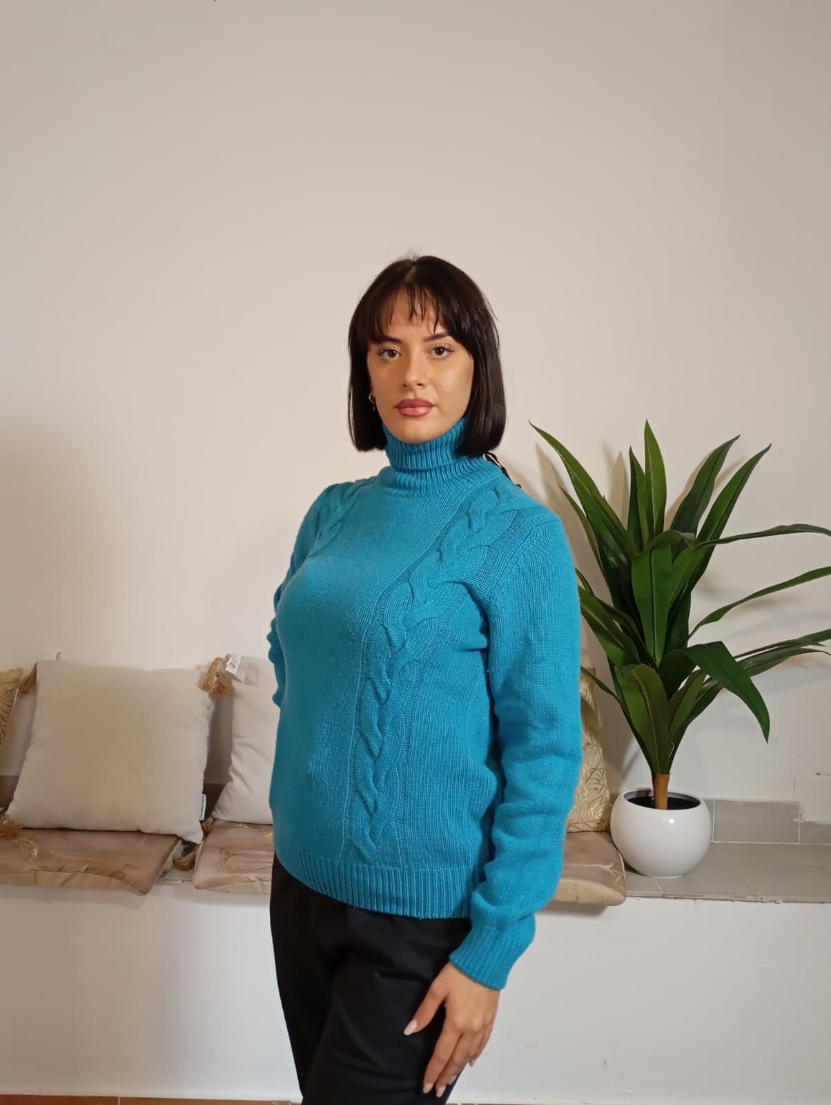 Il maglioncino EXTE è ideale per la stagione invernale grazie al collo alto a costine, che si abbina perfettamente alle finiture delle maniche e dell’orlo. Il capo presenta motivi unici che lo rendono distintivo e raffinato. Realizzato in un pregiato mix di materiali: 40% viscosa, 30% poliammide, 25% lana e 5% cashmere, assicura calore e comfort. La modella indossa la taglia su una altezza di 170 cm e un peso di 62 kg.