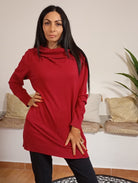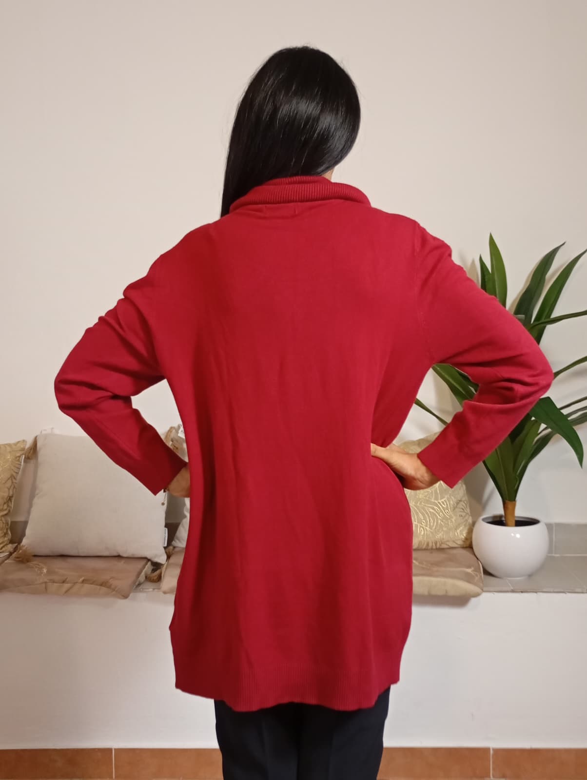 MAXIPULL MAISON FORM ELLE presenta un collo alto ampio e maniche lunghe con motivi decorativi sul davanti e lungo i lati delle maniche. Realizzato in un mix di 50% viscosa, 30% poliammide e 20% poliestere, combina comfort e stile. La modella indossa una taglia che valorizza la sua altezza di 175 cm e peso di 54 kg.