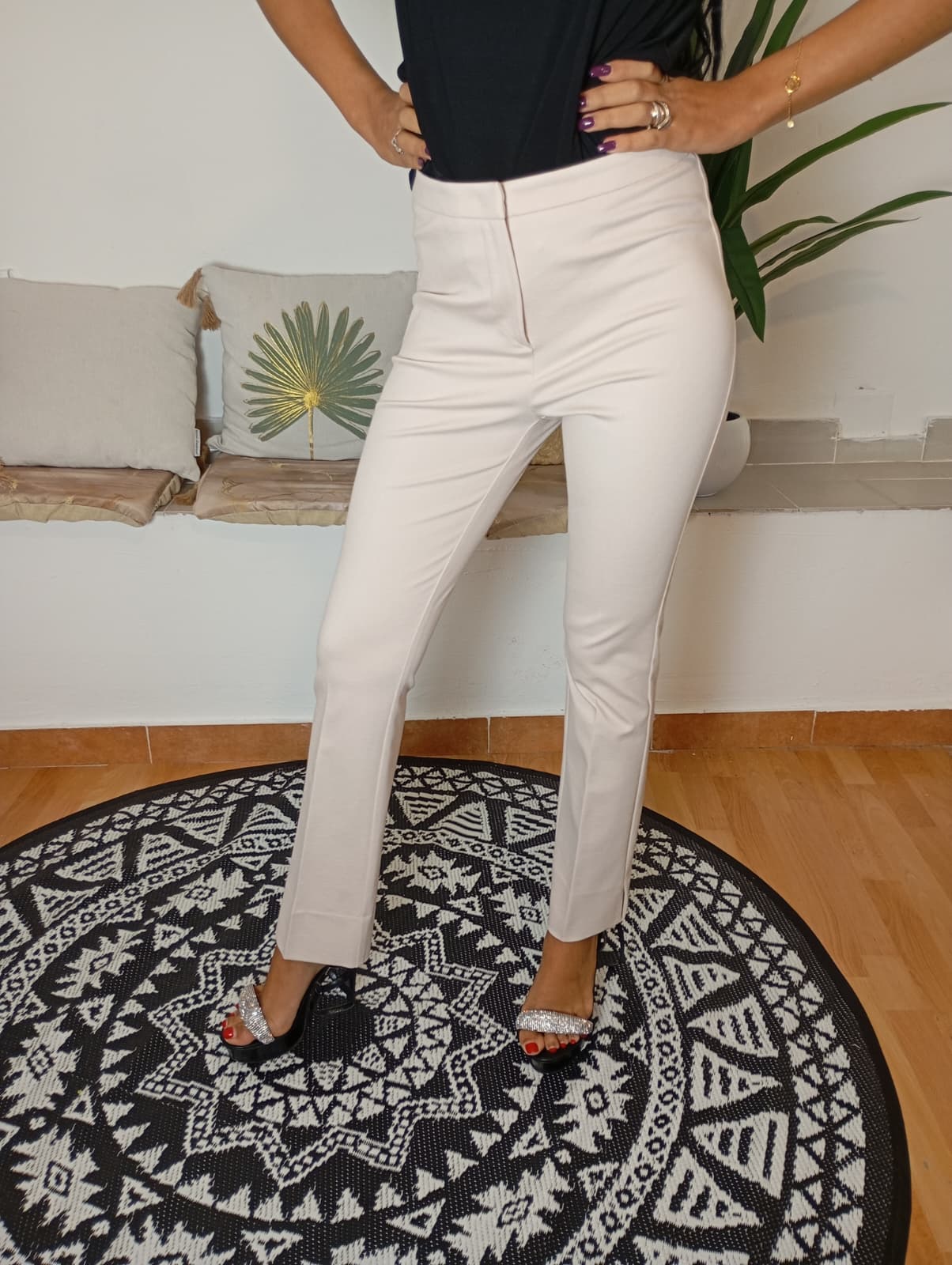 Pantalone Sandro Ferrone dalla silhouette raffinata e contemporanea. Realizzato in tessuto morbido e fluido, presenta una cerniera nascosta sul davanti e uno spacco laterale sulla caviglia che ne esalta l'eleganza. Composizione: 68% poliestere, 12% elastan. La modella nella foto indossa taglia 40, è alta 175 cm e pesa 54 kg.
