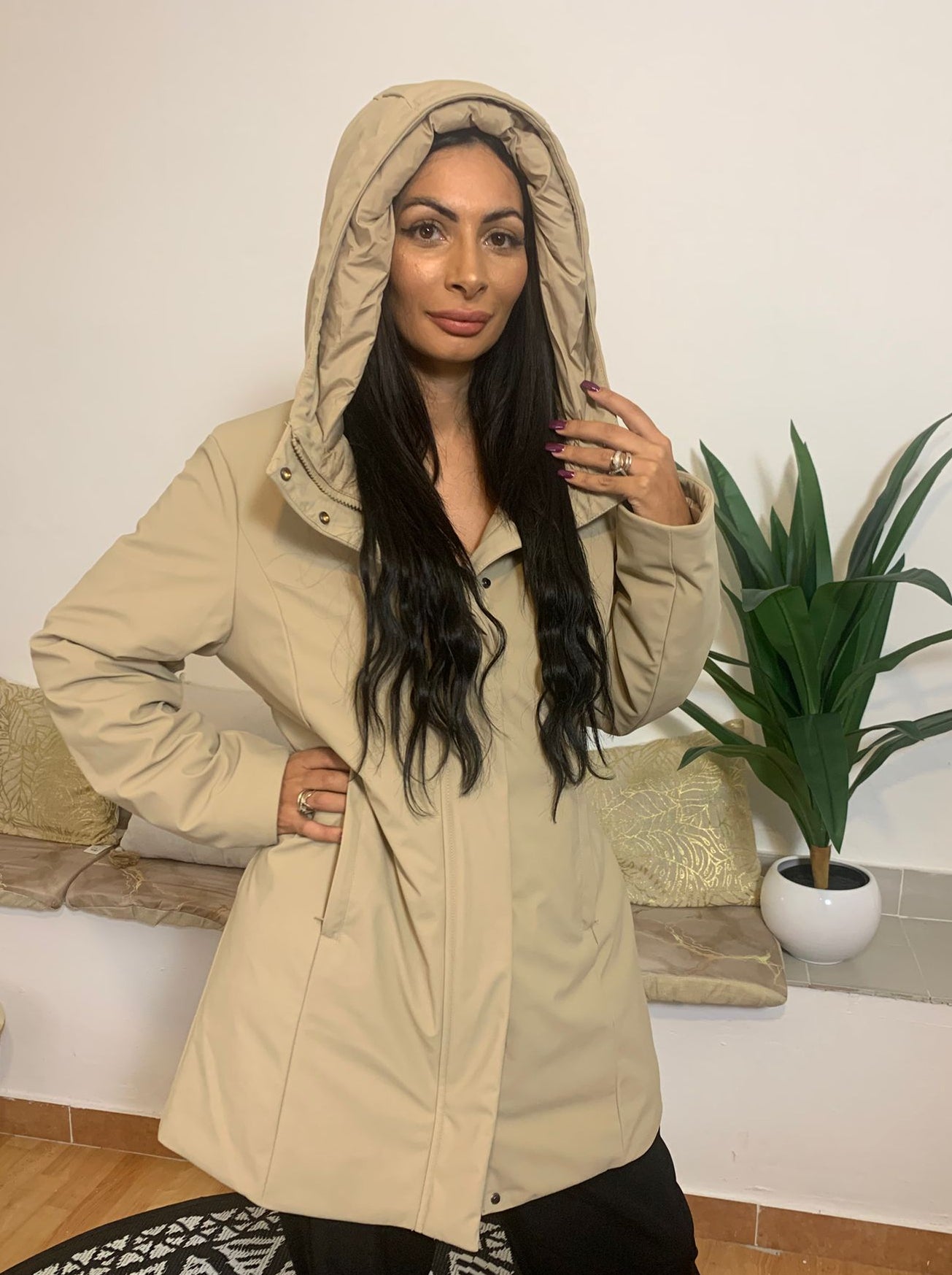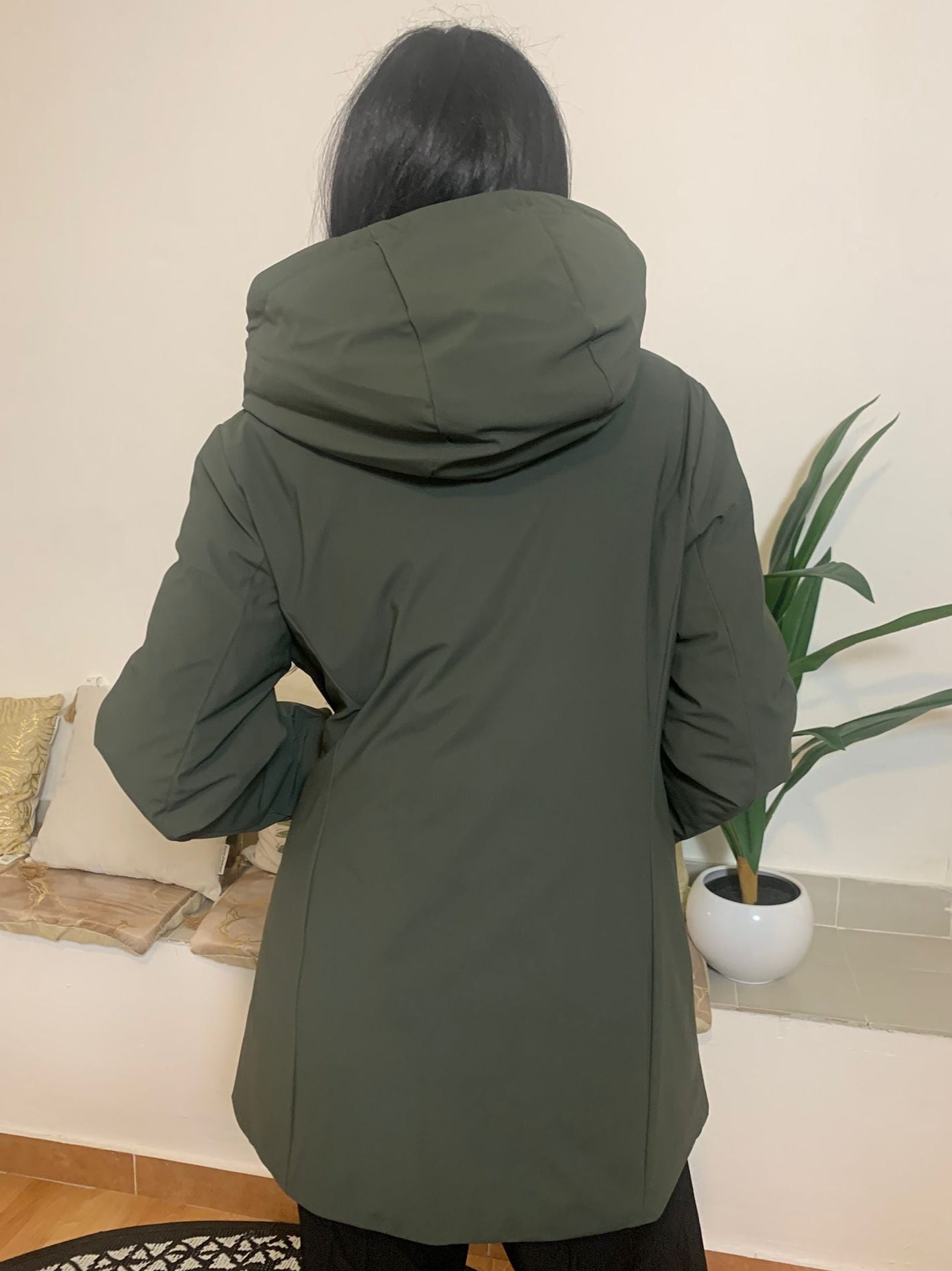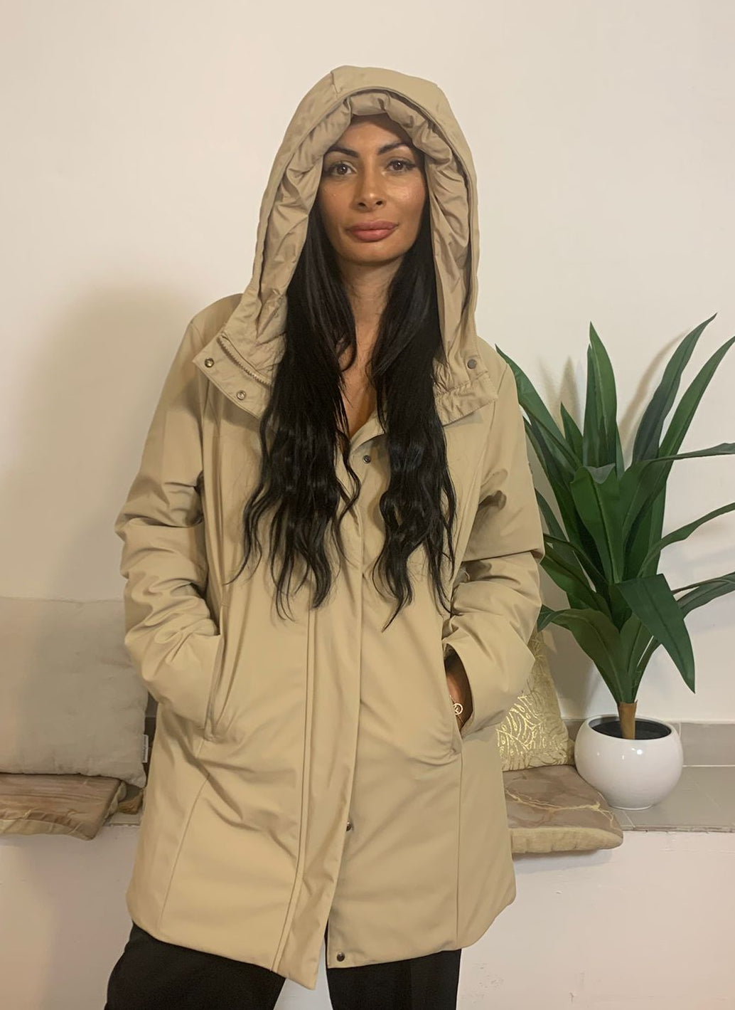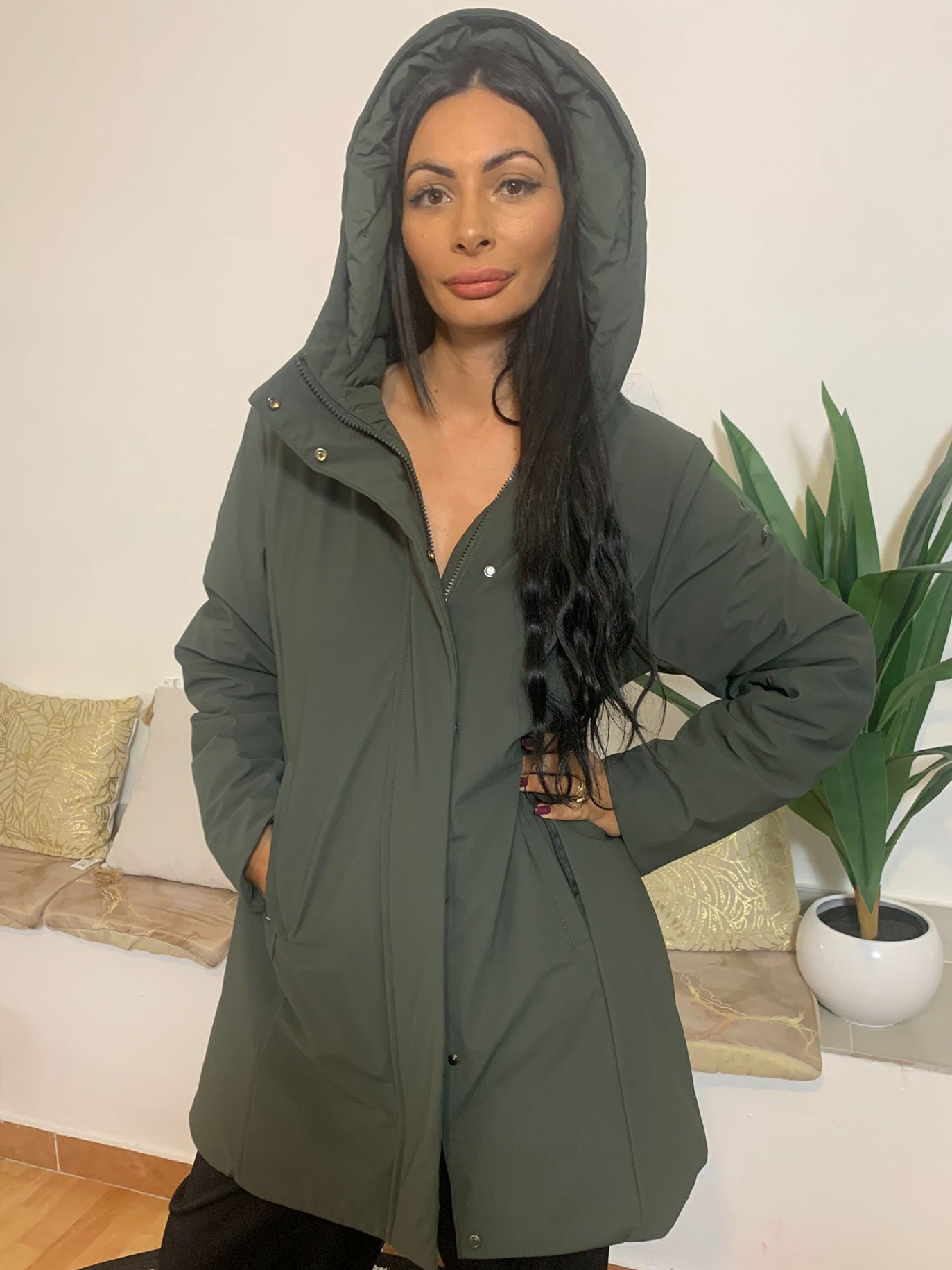 PEGGY HO propone un giubbotto in tessuto tecnico di alta qualità, con cappuccio integrato, tasche con zip, chiusura a zip coperta da una patta con bottoni a pressione. La vestibilità è media e sagomata, ideale per un look moderno e funzionale. La modella alta 170 cm e dal peso di 62 kg indossa una taglia M. Composizione: 100% poliestere.
