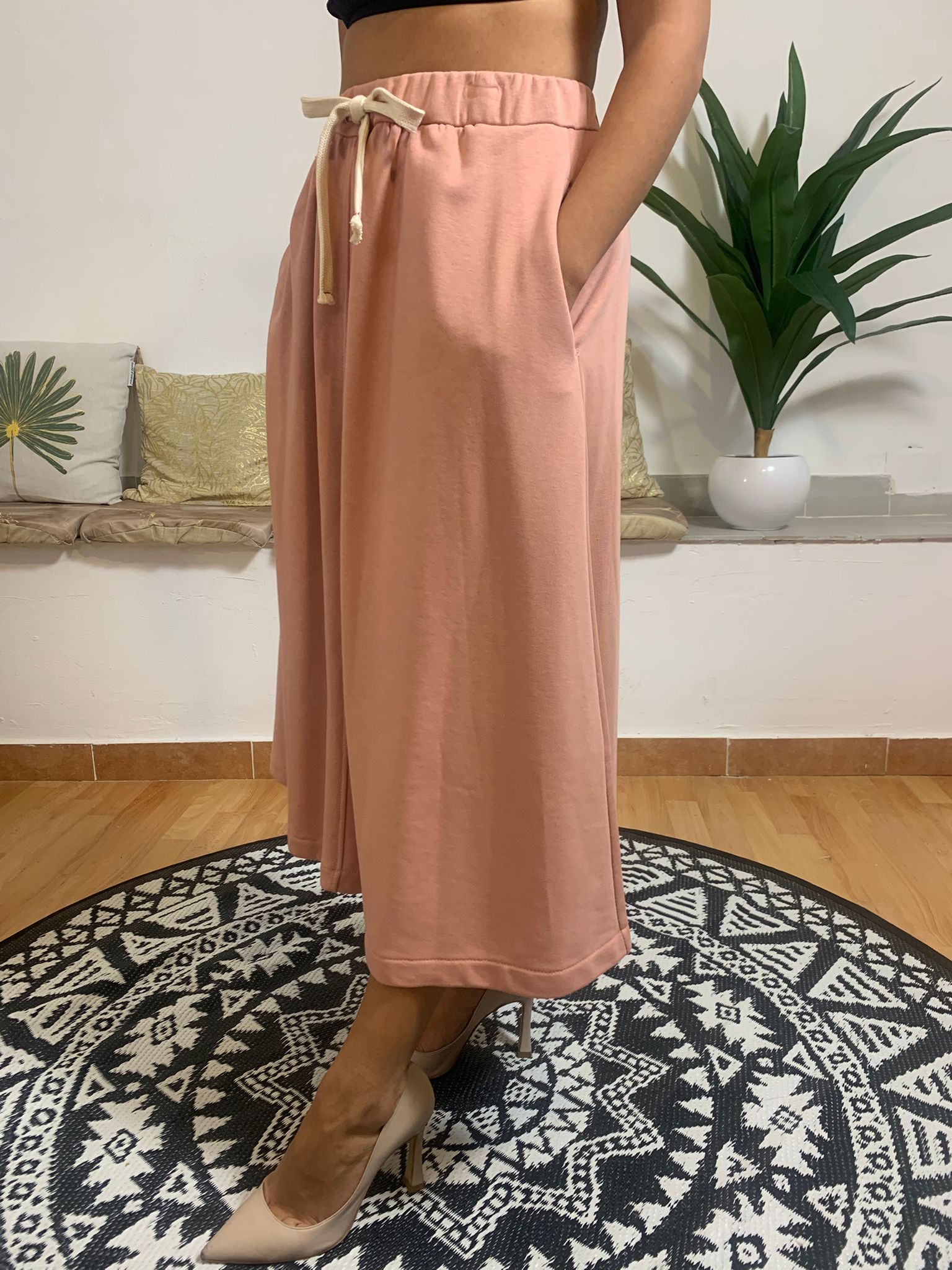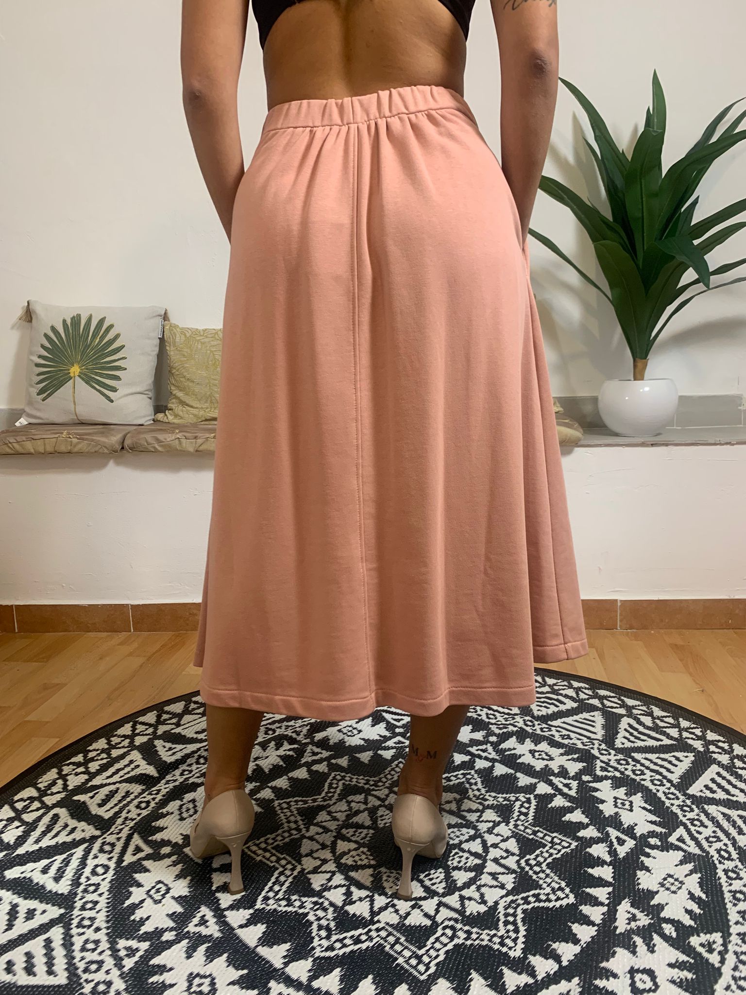VICOLO presenta un elegante gonnellone in felpa caratterizzato da una vestibilità comoda e fluida. Dotato di laccetto in vita e tasche laterali pratiche, questo capo assicura stile e funzionalità. La modella è alta 170 cm, pesa 62 kg e indossa una taglia S. Realizzato in 65% cotone e 35% poliestere per un comfort ottimale.