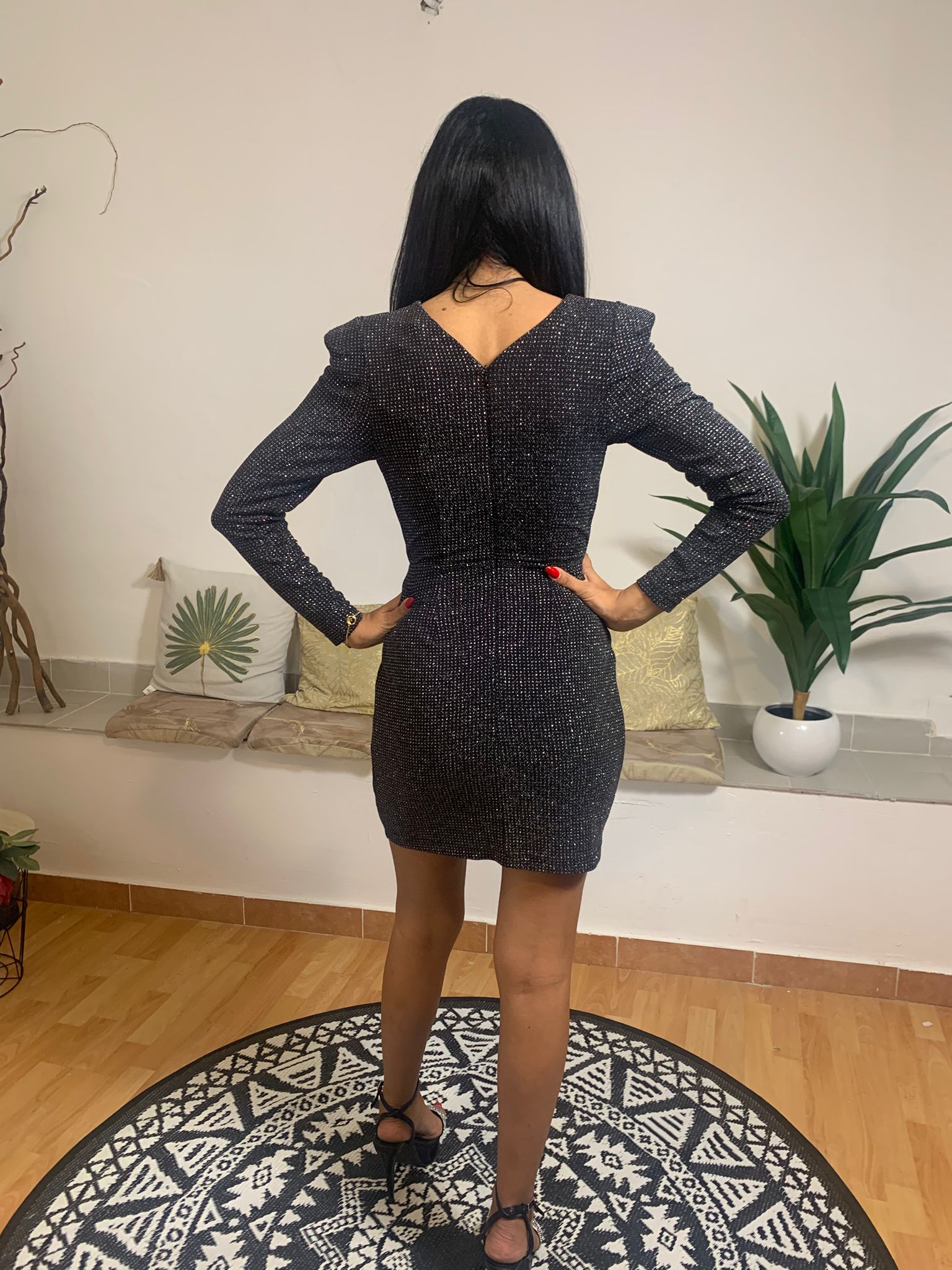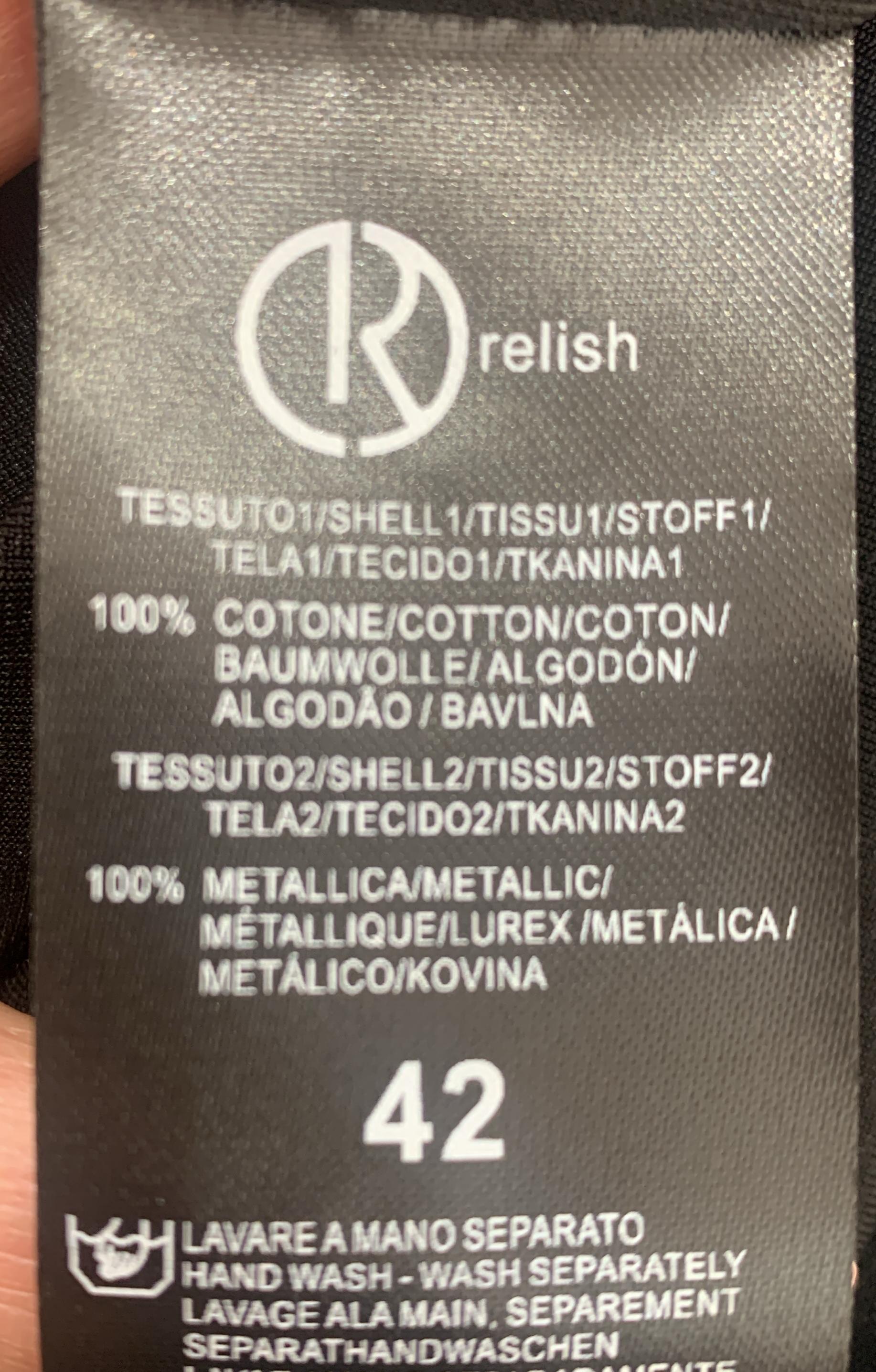 Relish realizza autentici capolavori con questo mini dress dal fascino femminile ed elegante. Caratterizzato da uno scollo a V drappeggiato al centro e spalline sottili, è realizzato in due tessuti: cotone 100% e materiale metallico. La modella, alta 175 cm e 54 kg, indossa una taglia 42.