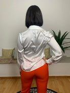 La camicia DEA FASHION è realizzata in morbido tessuto satinato leggermente trasparente al 100% poliestere. Con una vestibilità che si ferma sulla vita, presenta bottoni sia sulle maniche sia sul davanti, conferendo un tocco di eleganza discreta. Il capo è indossato da una modella alta 170 cm e con un peso di 62 kg.