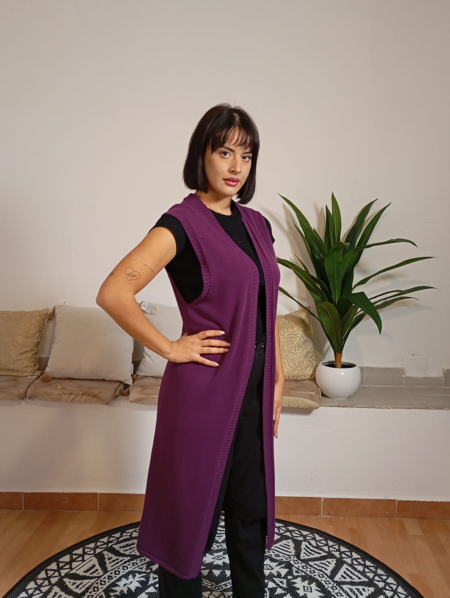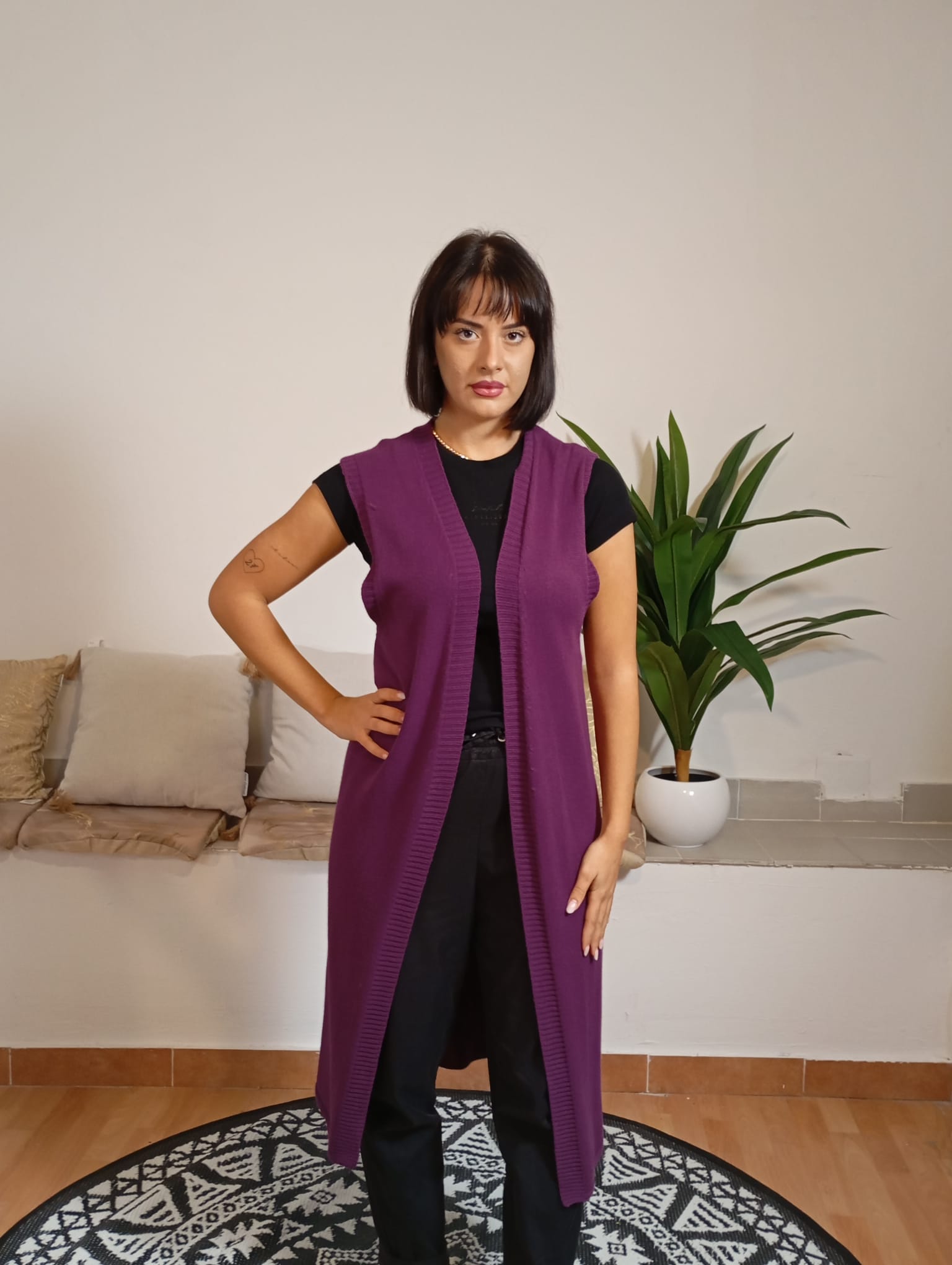 Il cardigan Kate è un capo lungo, smanicato e aperto, senza chiusure, dotato di tasche e cappuccio per maggiore praticità. Presenta una lavorazione a costine sulla parte interna. Realizzato in un blend di 65% viscosa e 35% poliammide, assicura comfort e resistenza. La modella indossa una taglia adatta, misura 170 cm ed è alta 62 kg.