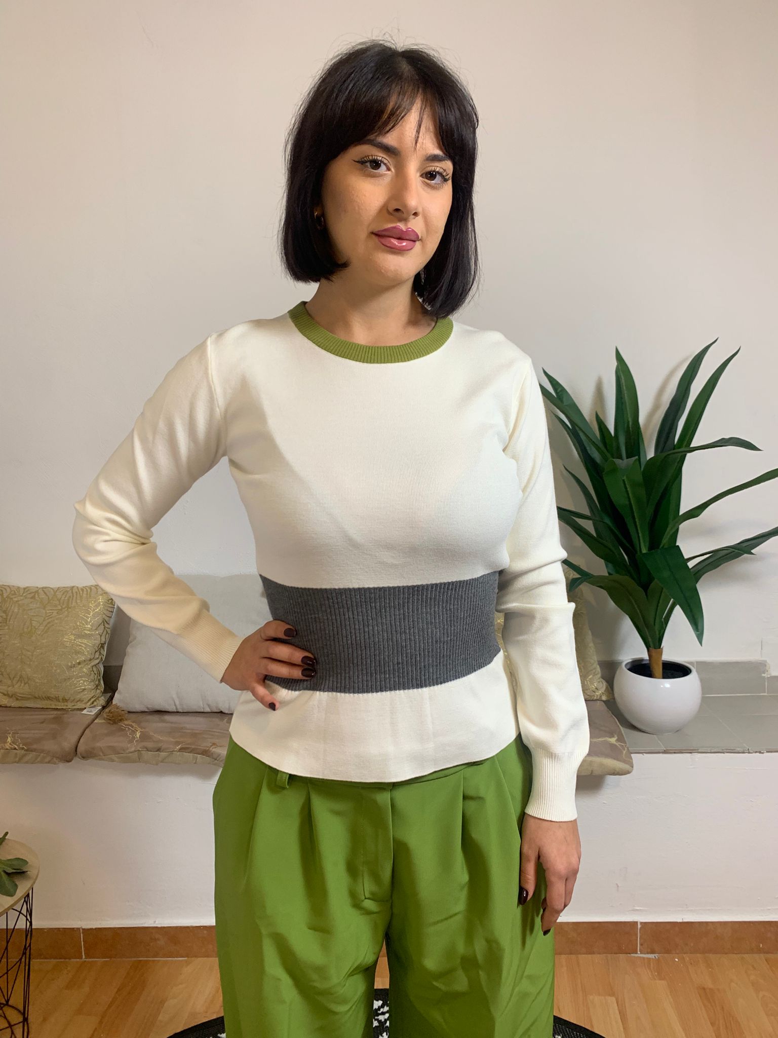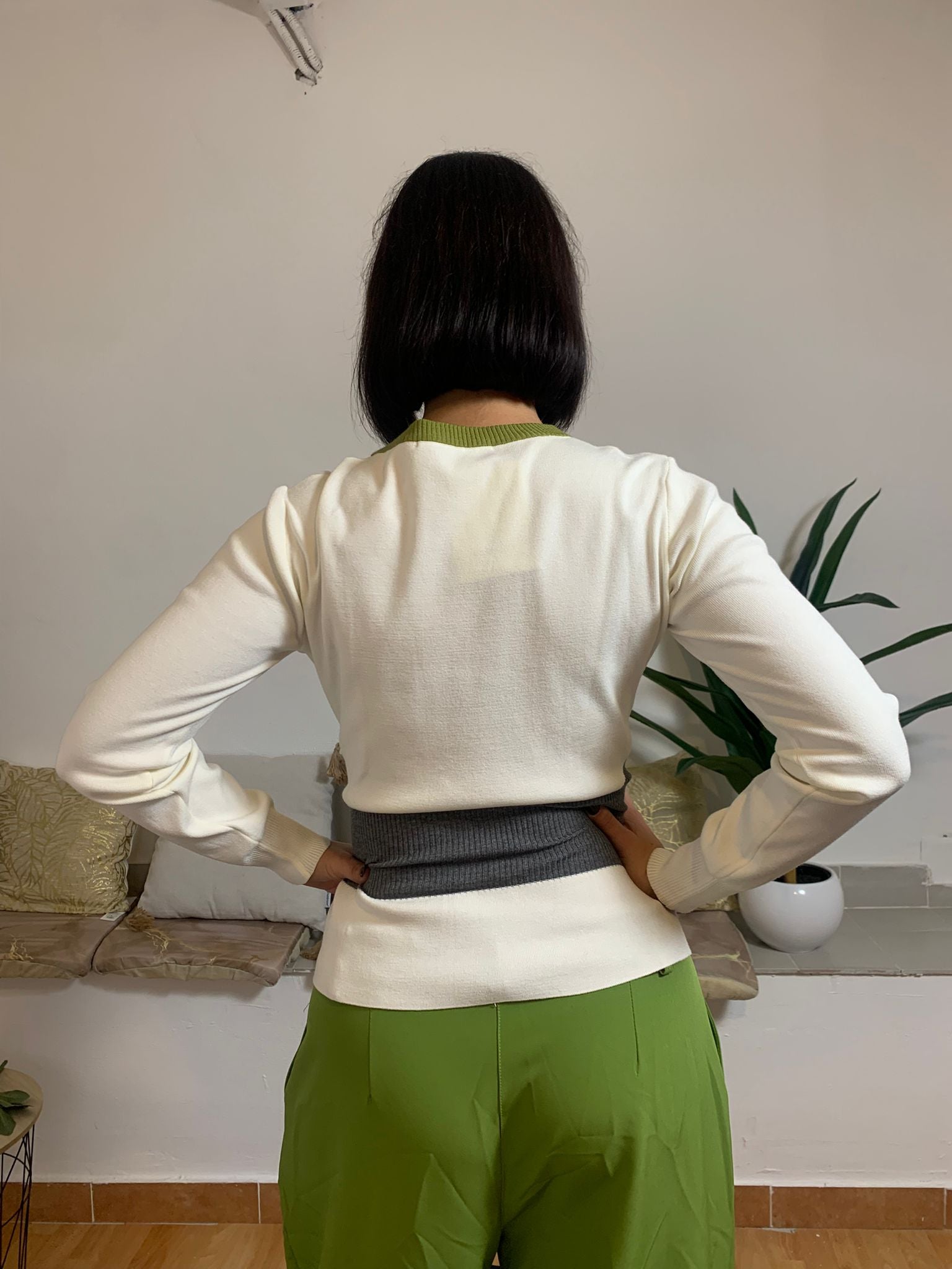 Elegante maglia a costine che valorizza la silhouette con dettagli raffinati al girocollo e in vita. Realizzata con un equilibrio perfetto tra calore e leggerezza, offre comfort senza appesantire. Ideale per chi ricerca un capo versatile e sofisticato. La vestibilità è stata testata su una modella di 170 cm e 62 kg, garantendo proporzioni armoniose.