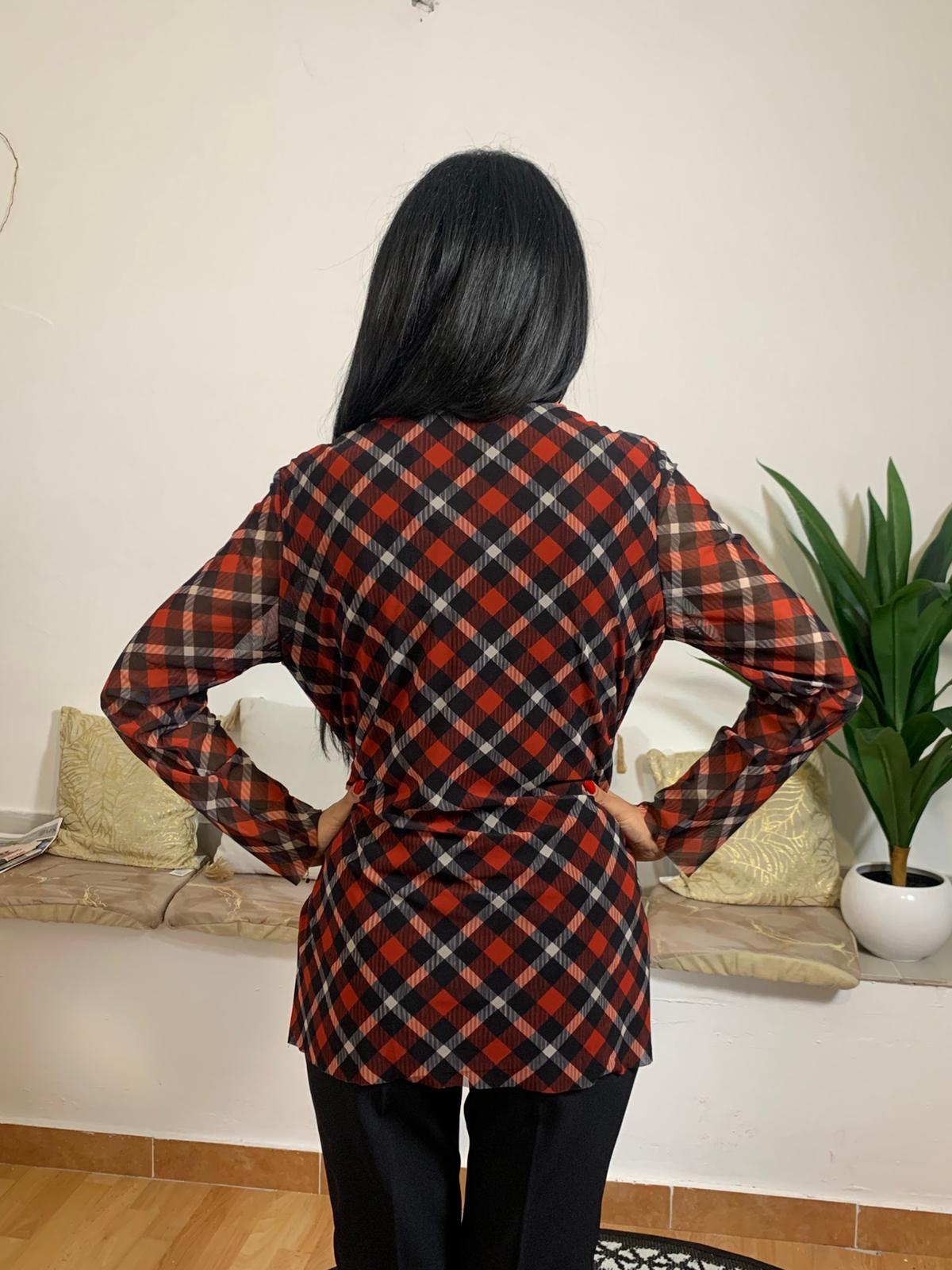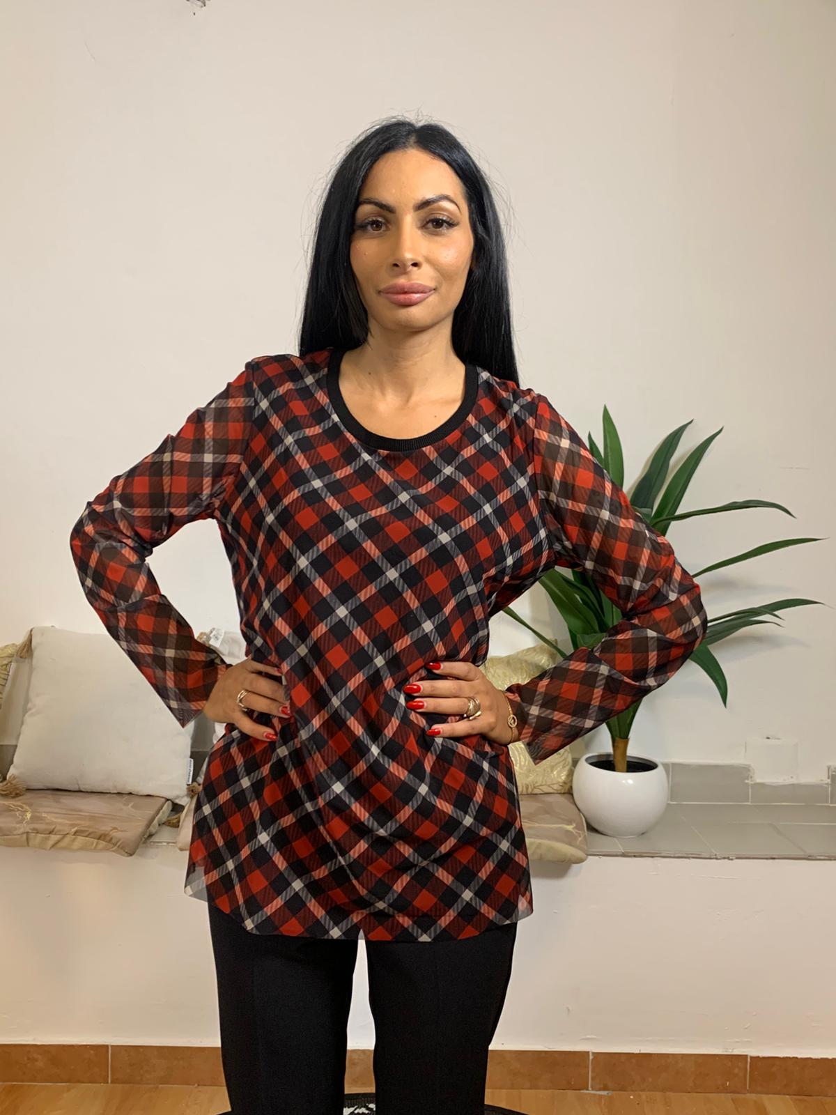 ELENA MIRO' presenta una maglia dal design intramontabile, con un motivo a scacchi in nero e rosso. Realizzata in una leggera maglina, presenta girocollo e maniche trasparenti, mentre il busto rimane coperto. Le maniche e il fondo sono rifiniti con taglio vivo. Il capo indossato dal modello in foto è una taglia M; altezza 175 cm, peso 54 kg. Composizione: 94% poliammide, 6% elastan.