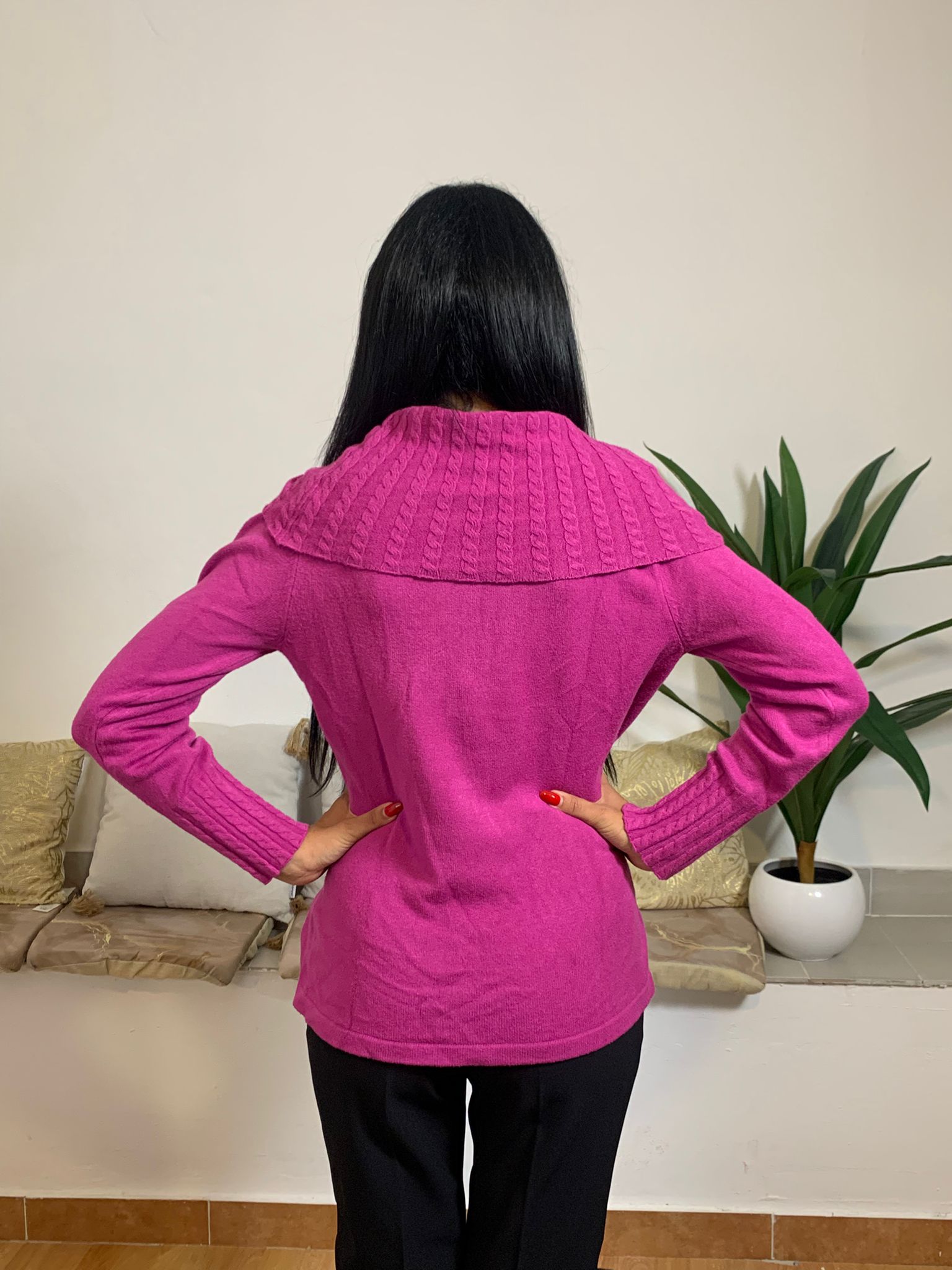 La maglia Orchidea Maison Form Elle è un capo invernale caratterizzato da un collo alto risvoltabile. Presenta un motivo decorativo su tutta la superficie e ampie costine rifiniscono i polsini delle maniche. Realizzata in un tessuto composto da 50% viscosa, 30% poliammide e 20% poliestere, combina comfort e stile. La modella indossa una taglia adatta a una figura alta 175 cm e dal peso di 54 kg.