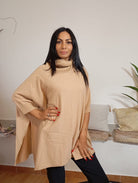Maglia Zoe è un capo ampio con maniche corte e collo alto arricchito da cuciture a coste. Presenta uno spacco su entrambi i lati che aggiunge un tocco di eleganza e movimenta la linea. Realizzata in un mix di materiali composto dal 53% viscosa, 24% poliestere e 23% poliammide, offre comfort e traspirabilità. Il modello indossato nella foto è alto 175 cm e pesa 54 kg.