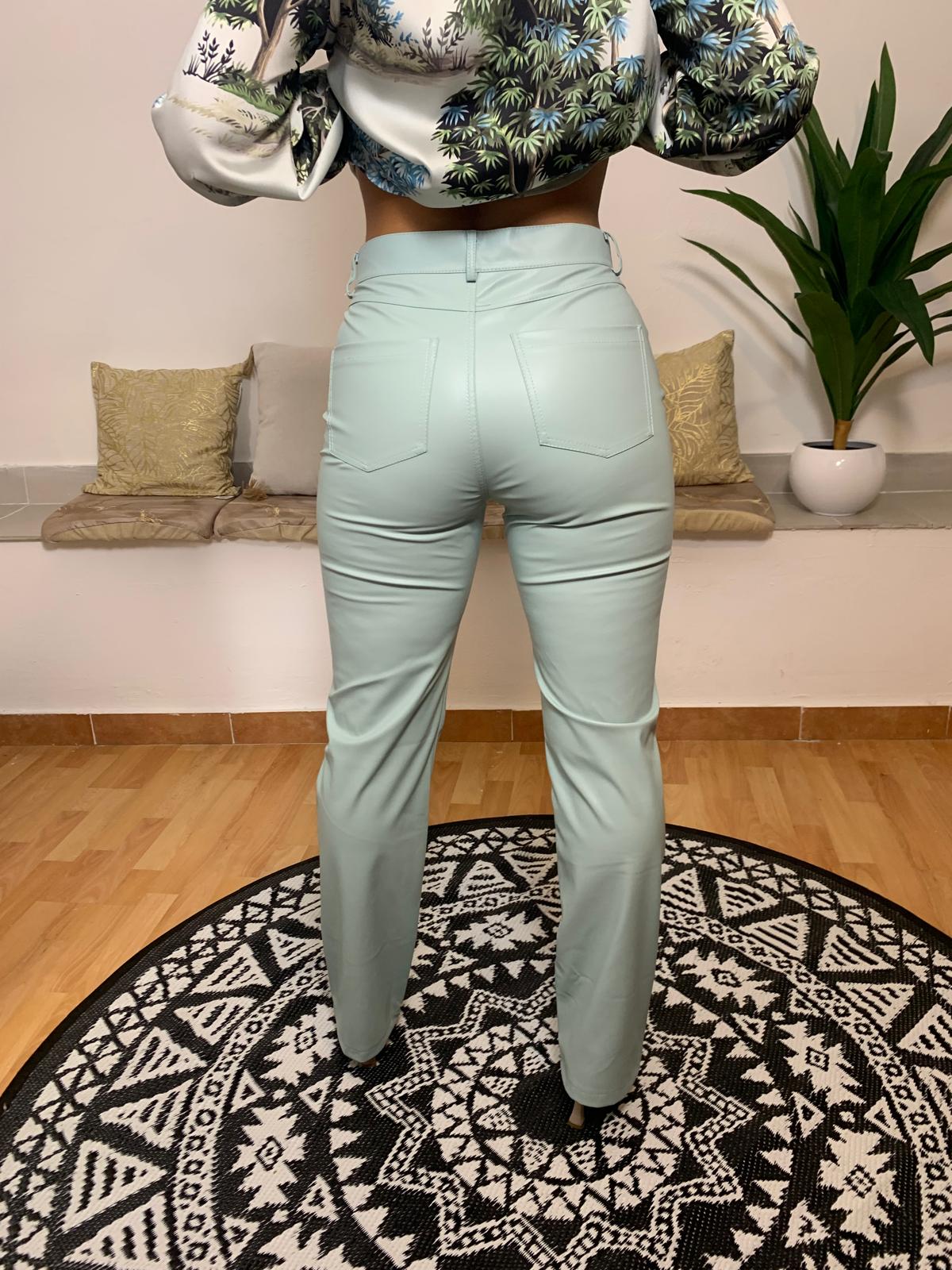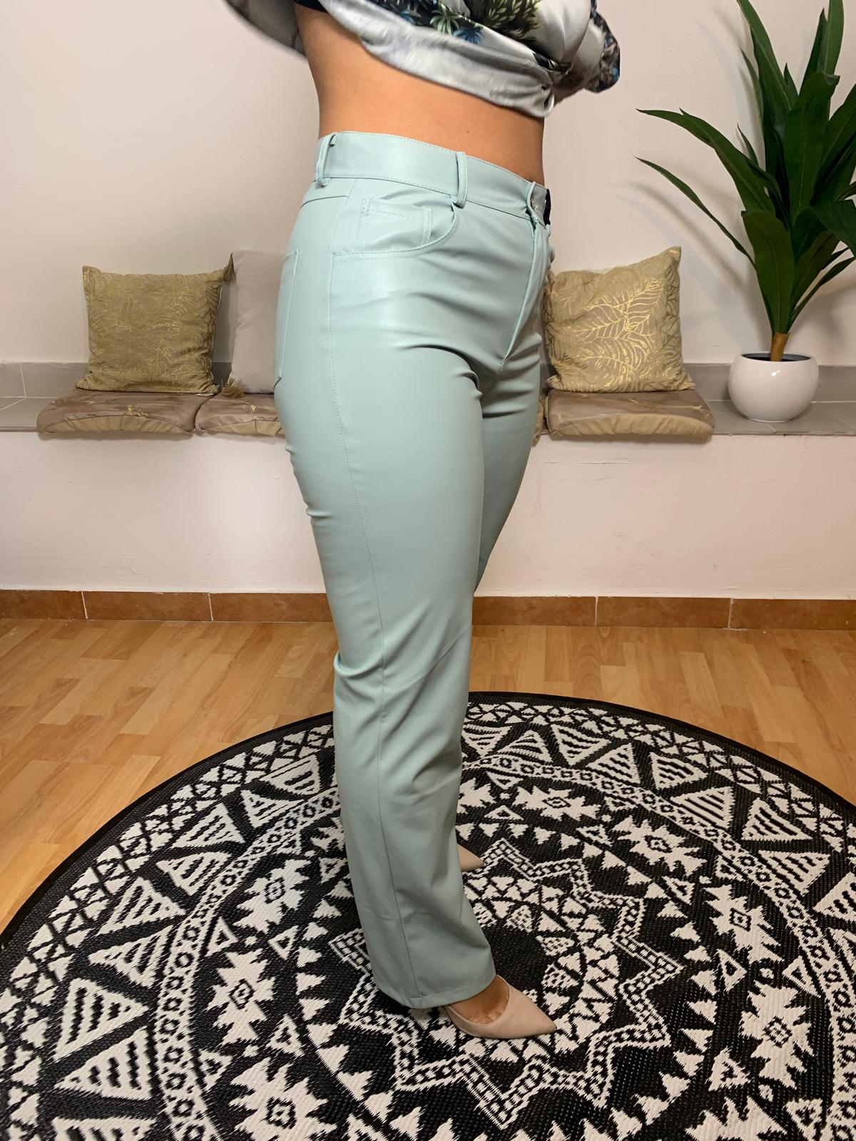 Pantalone Vicolo in similpelle, morbido e caldo, ideale per ogni occasione. Dotato di tasche pratiche e bottone centrale per una vestibilità perfetta. Realizzato in un mix di 50% poliestere e 50% poliuretanica, combina comfort e stile. La modella indossa la taglia adatta, con un peso di 62 kg e un'altezza di 170 cm.