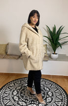 PELLICCIA PEGGY HO è realizzata in ecopelliccia 100% poliestere, perfetta per affrontare l’inverno grazie alla sua maggiore lunghezza e alla silhouette più ampia rispetto ai modelli convenzionali. Include un cappuccio integrato e una chiusura con graffette nascoste per un look elegante e funzionale. Il capo indossato dalla modella è una taglia M; lei è alta 170 cm e pesa 62 kg.